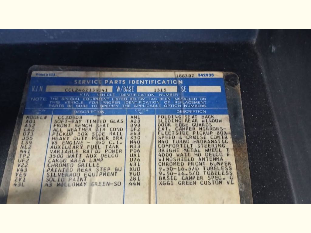 Précisions transmises par le vendeur : Pick Up équipé d'une climatisation, d'un volant inclinable, d'un régulateur de vitesse, d'une vitre latérale coulissante à l'arrière, de deux réservoirs, d'un pack de remorquage, d'un moteur V8 350 et d'une transmission automatique