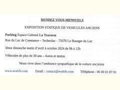 Rendez-vous mensuel tous les 3e dimanches de chaque mois, de 9h à 13h, sur le parking de la Mairie. Ouvert à tous véhicules antérieurs à 1980 et aux véhicules d'exception. Entrée gratuite.