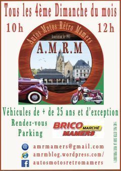 Rassemblement de véhicules anciens avant 1990 à Mamers. Destiné aux autos, utilitaires, cyclomoteurs ou motos de + 30 ans (sauf Tuning).