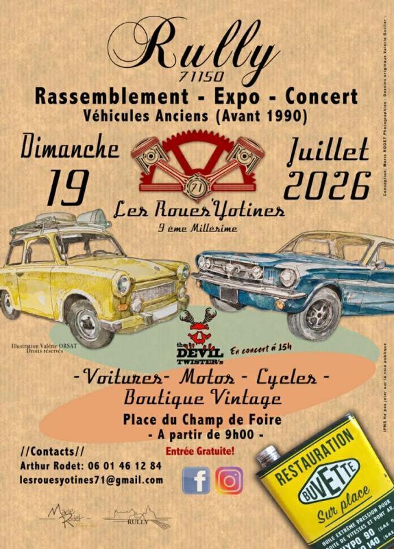 Rassemblement réservé aux véhicules historiques, de prestiges (autos/motos/camions/tracteurs) d’avant 2000, marché pièces d’occasions