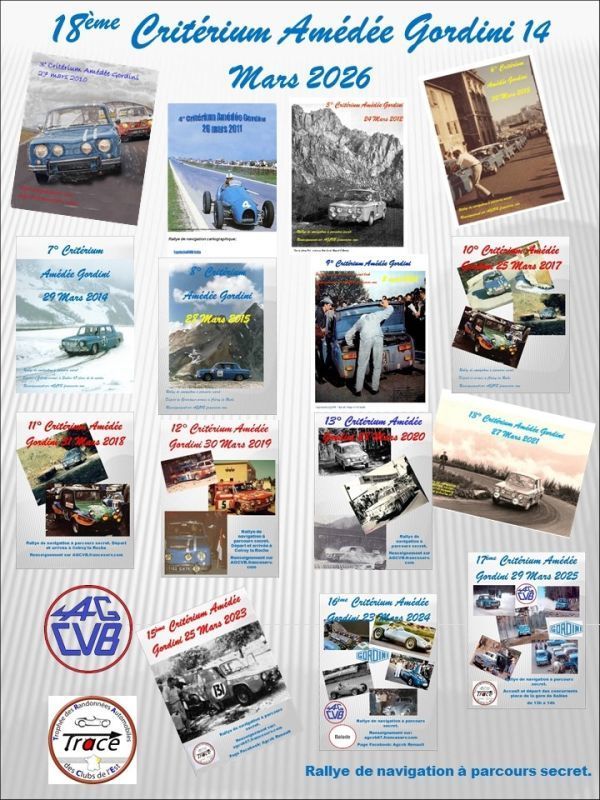 La dix-huitième édition du Critérium Amédée Gordini est en préparation, que de chemin parcouru depuis la première édition, un rallye sans chichi 100/100 Carto, un prix ridicule avec un frichti de clôture extrêmement simple.