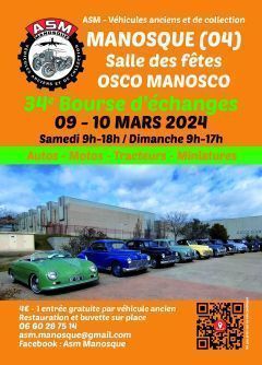 - Le dimanche 19 Mai 2024 de 9h00 à 18h00, parking du Conservatoire du Machinisme Agricole et des Métiers d'Autrefois, au 15, Rue de l'Hermitage, 70100 VELESMES.
