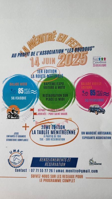 - Le 21 juin : Bourse d'échanges à partir de 7h (emplacements gratuits pour les exposants, attention : places limitées), Exposition de motos anciennes (jusqu'à 1965), restauration par le Rétro et animations diverses, 14h00 fin de la bourse.