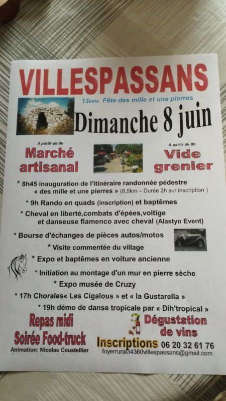 La fête des mille et une pierres, c’est une journée où il y a plein d’ animations, spectacle de voltige, danseuse avec chevaux, voiture ancienne, rando en Quad, baptême en Quad, plein d’autres animations. N’hésitez pas à me contacter pour tout renseignement je vous mets la fiche en pièce jointe